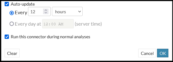 - Select Run this connector during normal analyses if you want your tool connector to run during a scheduled analysis.